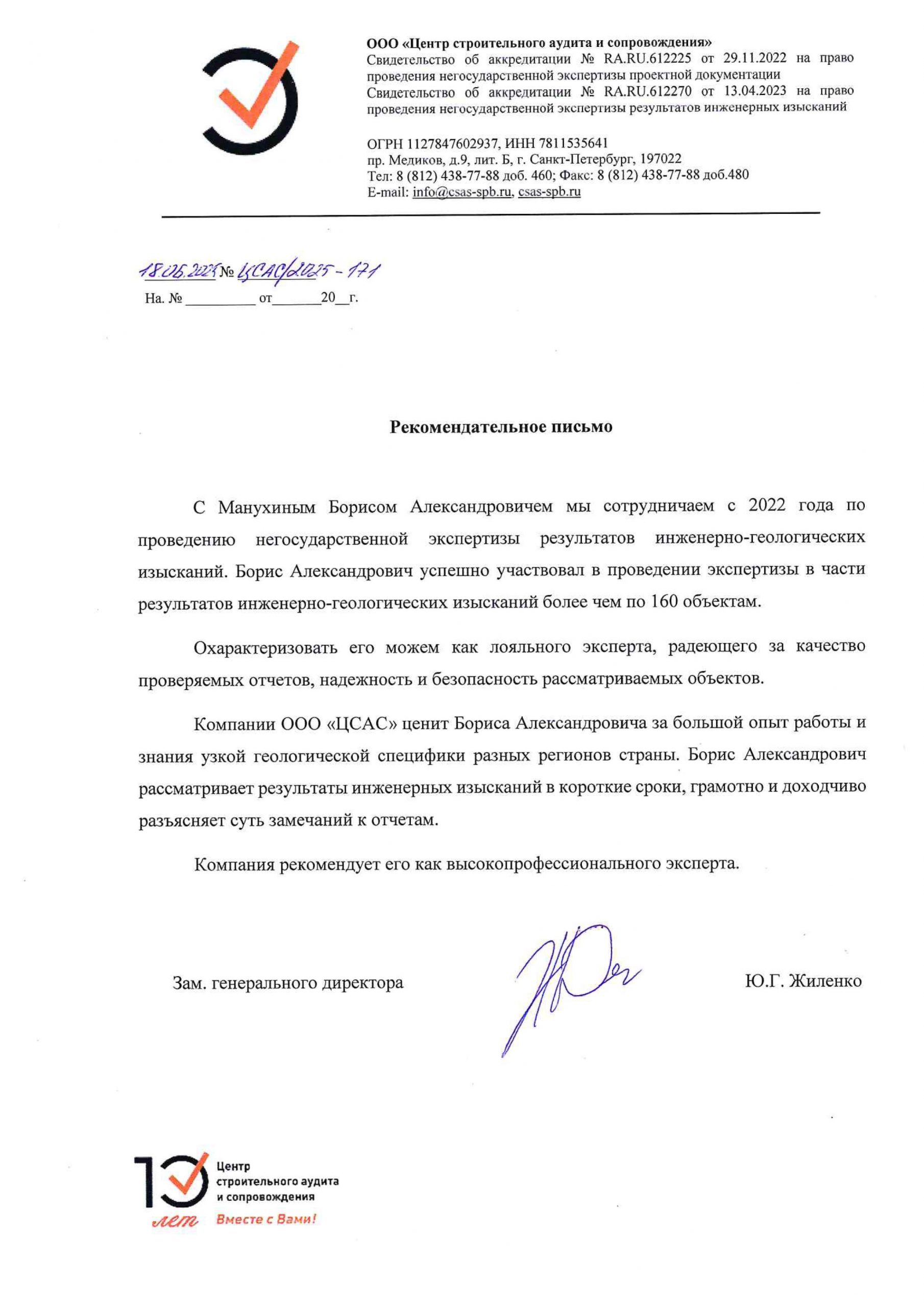 Вчера вечером получил рекомендательное письмо от второго своего крупного заказчика ООО «Центр строительного аудита и сопровождения» (их сайт csas-spb). Можно сказать работать мы начали недавно, поэтому пока количество объектов не такое и большое, но данная компания уже успела обогнать по количеству объектов основную часть моих заказчиков. Компания на рынке с 2012г., и я смело могу её отнести к лидеру среди компаний Санкт-Петербурга и Ленинградской области, поэтому если ваш объект находится там, то смело обращайтесь в ООО «ЦСАС». Также они активно работают в Мурманской области, тоже их рекомендую. Если вы из других регионов, то тоже можете обращаться, эксперт по геологии (т.е. Я) у них справится с любым регионом. Так как объекты Санкт-Петербурга и Ленинградской области довольно сложные, то думаю и остальные эксперты отработают на отлично.